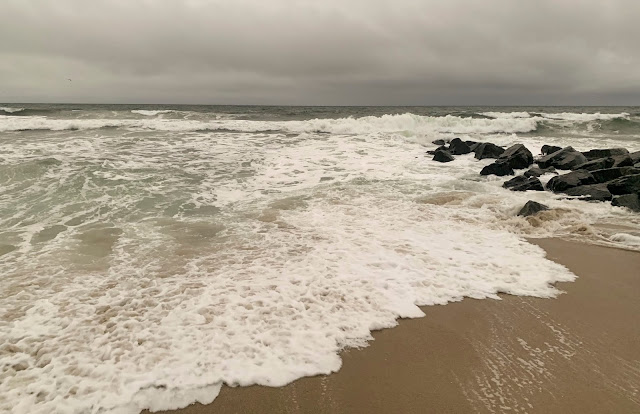 I decided to bite the bullet and head north to a place where the fishing has been real good. Lots of fish and lots of guys. They said the fish had been coming in and they were sometimes in the wash and within fly rod distance, so I went. Now this stretch isn't my favorite, long beaches without groins or breaks leaving sweeps left and right which are tough with the fly rod.