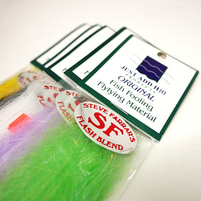 SF Flash Blend, which is a blend of Slinky Fiber and Angel Hair. It is a great synthetic to tie with, and the thing I like about it is it comes in a variety of colors, is easy to work with, and the best, it can be trimmed, for me, that means correctly a too-bulky or tapered incorrectly fly. Steve is a natural when