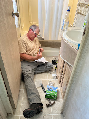 busted fitting on the hot water heater which took me like almost a month to diagnose and fix. We had a deluge of rain yesterday and we found a leak, a good one, on one of slide outs in the dining area. This one ain't gonna be fun, and that'll be for next weekend.