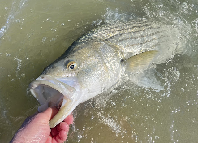 What was cool was how the bass would bust though a pod of adult bunker and then give chase after the pod had become dispersed. Sometimes there's just too much bait at your feet, but not today.