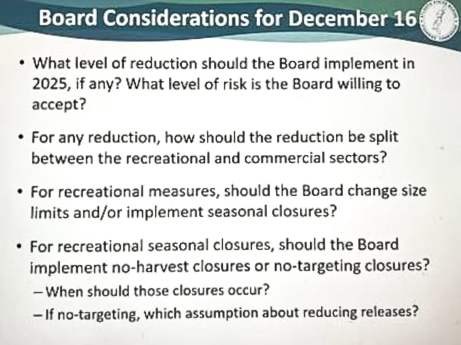 It'll be on December 16th when the ASMFC Atlantic Striped Bass Management Board will decide what changes need to be made for the 2025 season in order to "attempt" to meet the rebuilding goal by 2029. It's really all a joke. It's not funny, just more pitiful. Last evening an informational webinar was held prior to that meeting on the 16th. It was an eye opener.