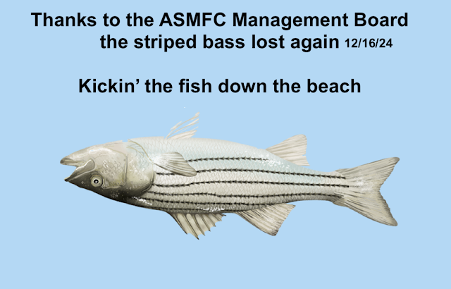 I don't know why the ASMFC even gives him so much power. He comes across as having sense, and being genuine and believable but he is just setting everyone up with his monotone, condescending, and overly concerned and fake delivery. He's looking out for his for-hire buds and all the folks that like to harvest striped bass. And John Clarke from Delaware and Mike Luisi from Maryland came up right behind to help him out. And then he bought up a motion to amend the original Addendum regarding timing of the decisions which means implementation in 2026.